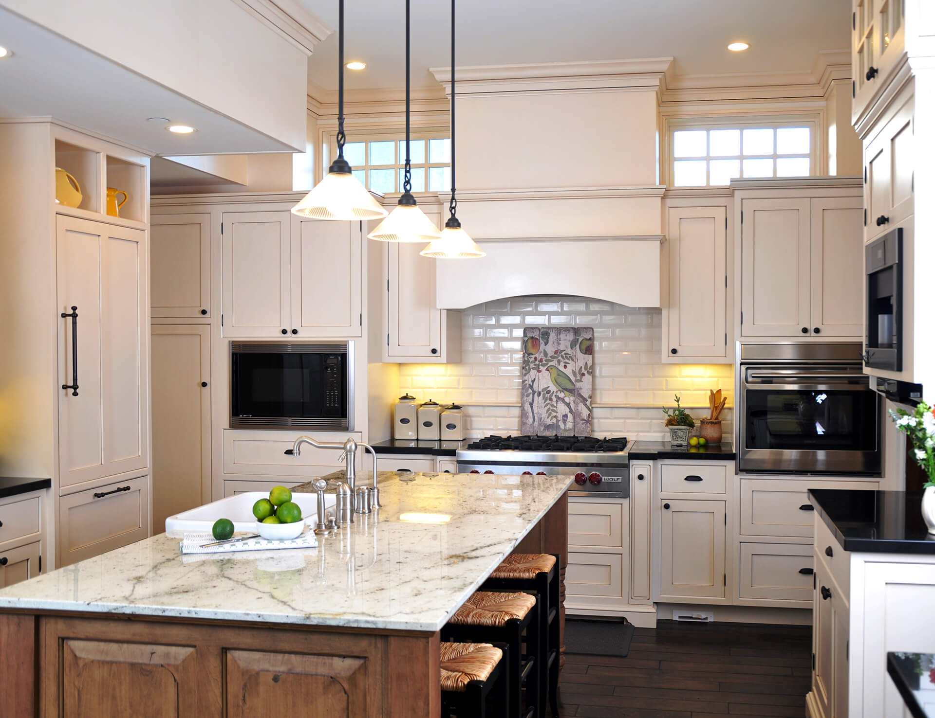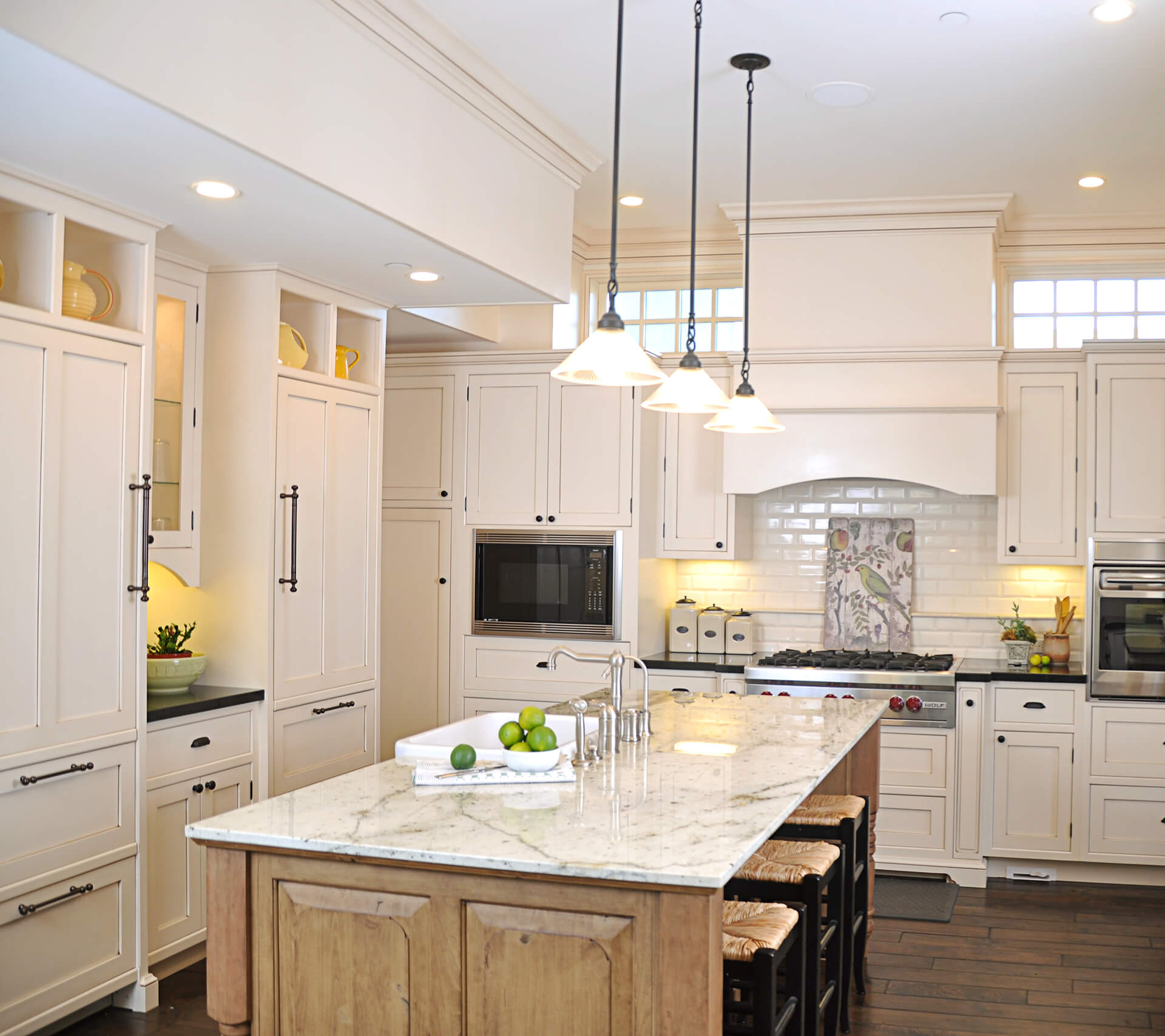 Located in Oceanside Californian beach-town, this stunning Oceanside home is the epitome of luxury living. With uninterrupted views of the sparkling Pacific Ocean. The designer worked with the architect to create a custom home with beautiful clear-story windows above the cabinetry in the kitchen.